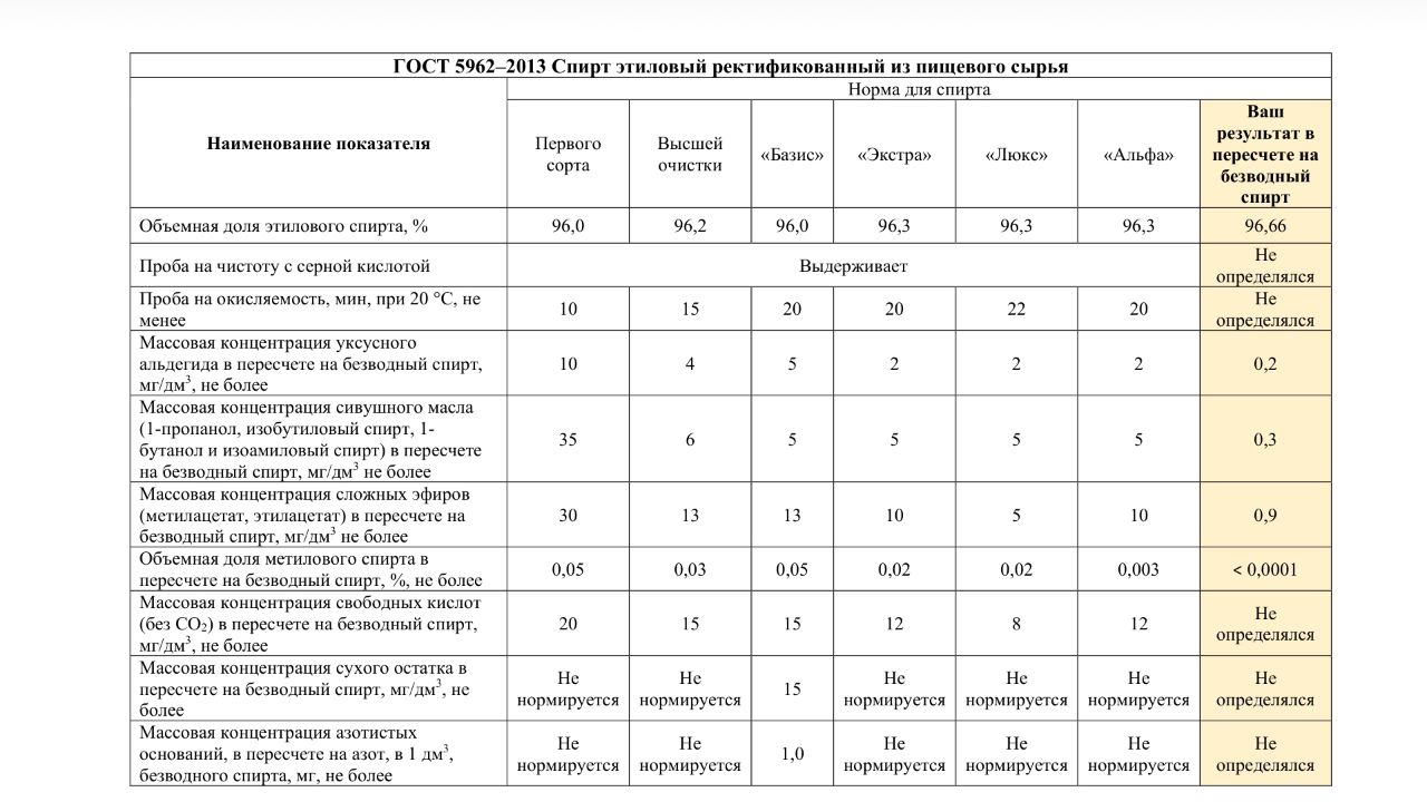 Из газохроматографического анализа видно, что предлагаемый нами пищевой этиловый спирт, превосходит по качеству спирт Альфа ГОСТ 5962-2013. Наш главный приоритет это высокое качество. И мы вам советуем проверять спирт, если у вас есть сомнения в продавцах. Этот недорогой анализ. Здоровье нужно беречь. Наш спирт подходит для получения премиум алкоголя, изготовления различных настоек и прочих потребностей. Высококачественный пищевой этиловый спирт, как правило делается из зерна или сахара. По запаху это не определить и если вы из него делаете алкоголь, то на утро у вас не должно быть похмельного состояния, в том случае если вы не мешаете алкоголь сделанный из нашего спирта с другим алкоголем. Контроль производства нашего спирта, ведется с помощью электроники, поэтому у нас стабильное качество, каждую партию мы проверяем на ГХ анализ и его прикладываем при отправке клиенту. Поэтому вы сами это можете увидеть качество продукции. Хранить его нужно в стеклянных емкостях, или в емкостях из пищевой нержавеющей стали. Берегите свое зоровье и не злоупотребляйие алкоголем, но если злоупотребряете, то лучше качественным!